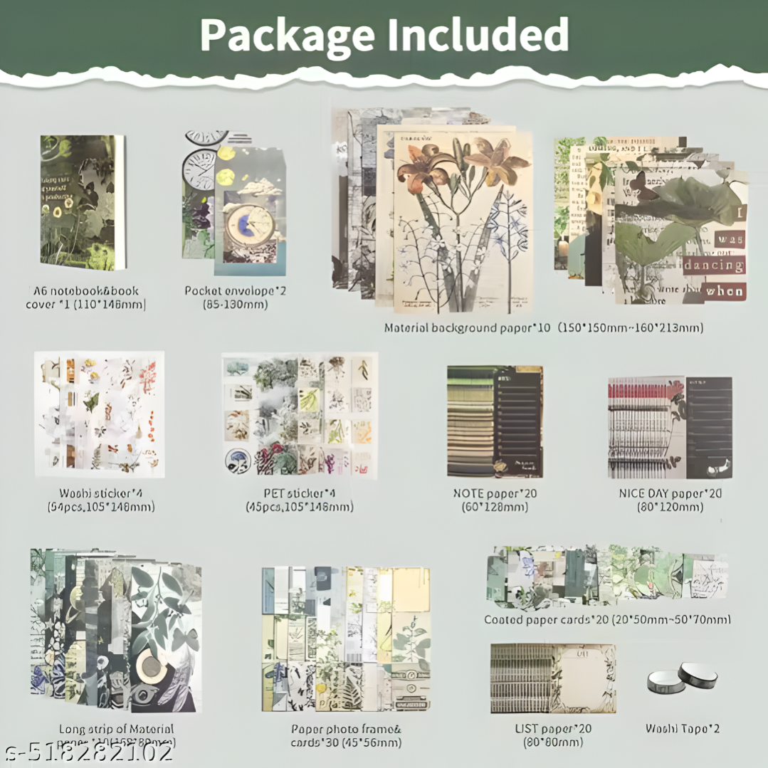 BIGMOTHERS Forest Scrapbooking Kit | Vintage Supplies with Decorative Papers, Stickers, Washi Tapes, Cards, Frames & Notebook