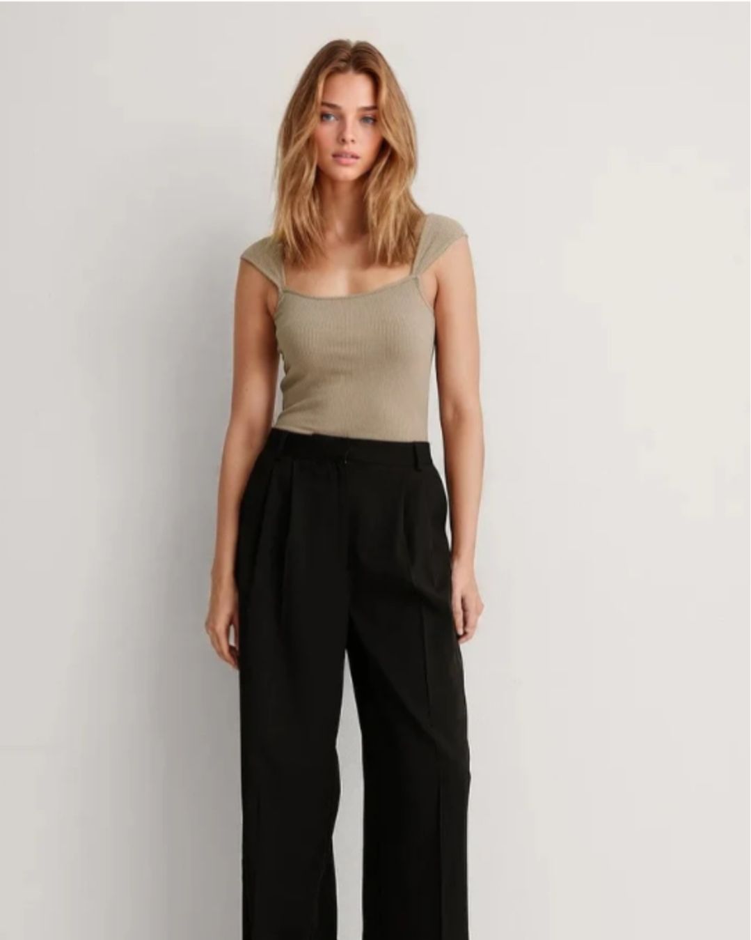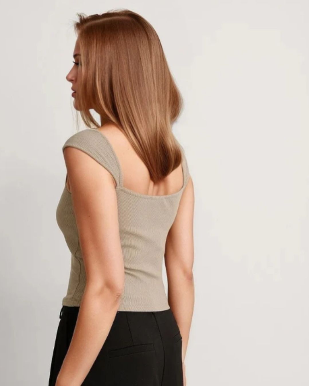Cropped Ribbed Tight Singlet in beige - Round neckline and wide shoulder straps for a flattering fit - Made from ribbed, stretchy material for all-day comfort.