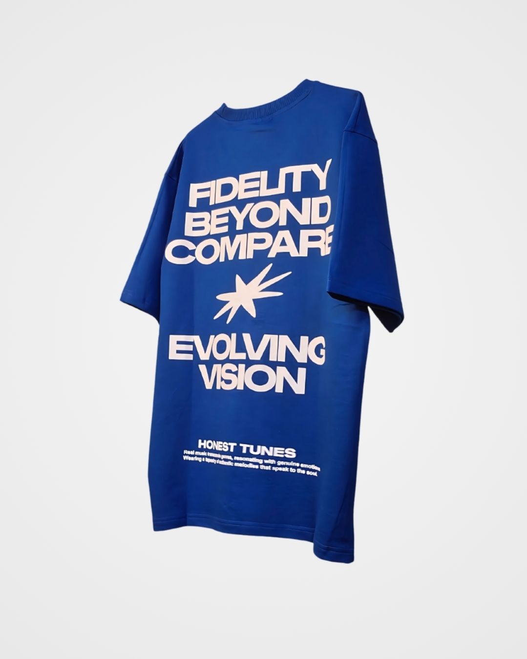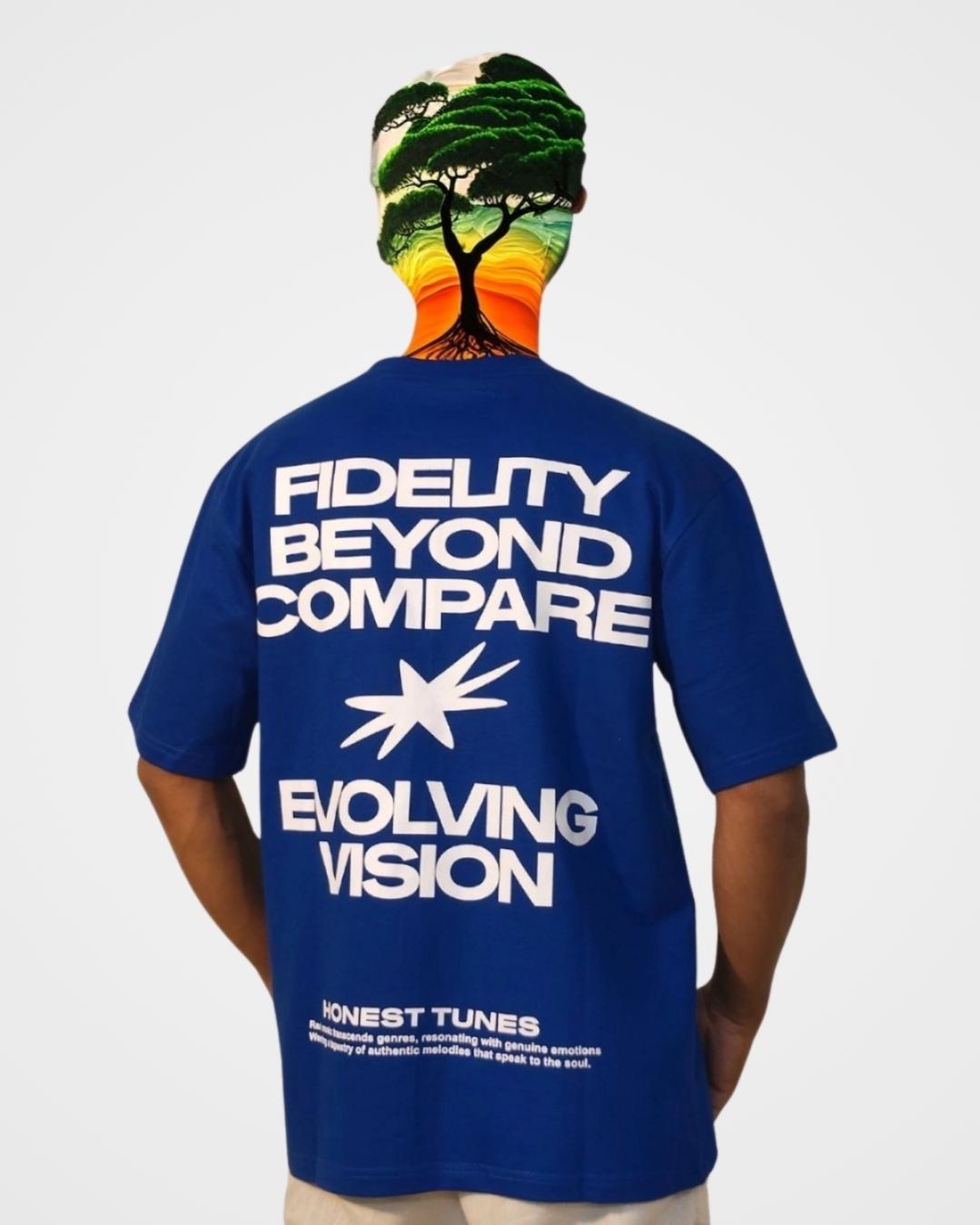Crafted by Balluchi and offered exclusively on FastFash.in, the Honest Tunes Tee is stitched with more than thread — it’s woven with intention. With phrases like “Fidelity Beyond Compare” and “Evolving Vision”, this piece reflects a belief that honesty in thought, emotion, and art will always outlast status.