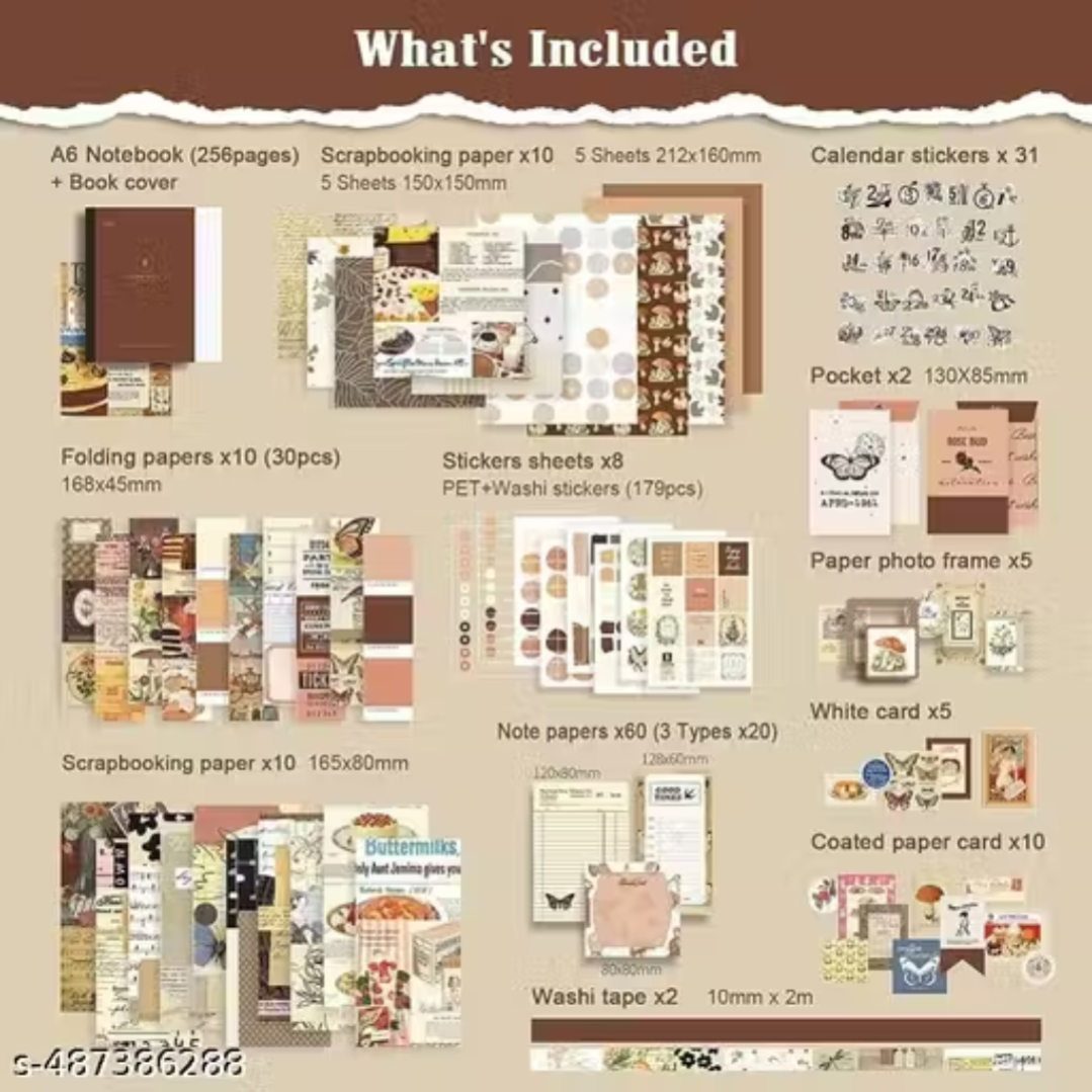 Scrapbooking Kit Aesthetic Journaling Kit with Bullet Journal Stickers Set Scrapbook Paper Washi Tape Set Cute stationery Kawaii Stationery Korean (Cocoa Brownie).