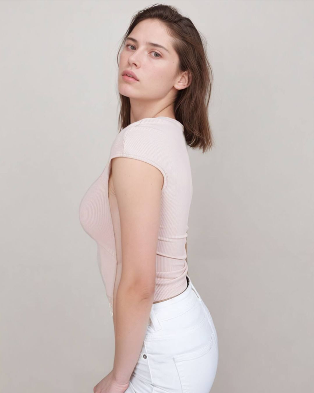 Stylish ribbed top featuring a square neckline with notch detail. Made from stretch-fit fabric, this cropped silhouette with short sleeves is perfect for casual, everyday, or layered looks.