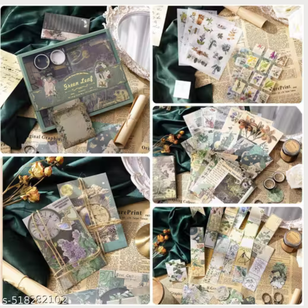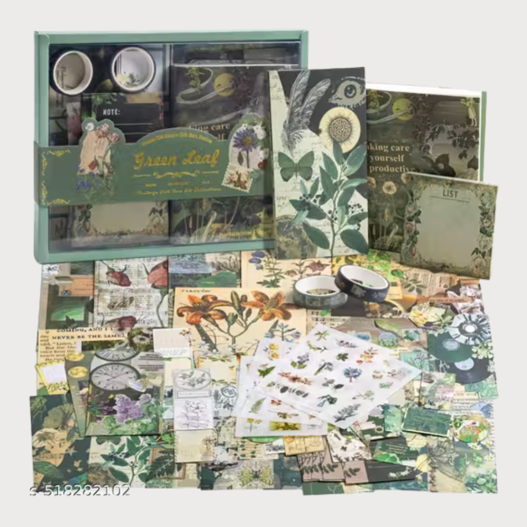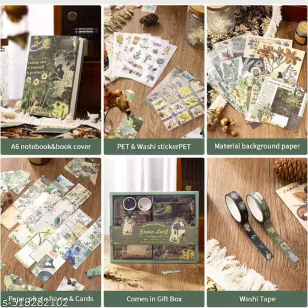 BIGMOTHERS Forest Scrapbooking Kit | Vintage Supplies with Decorative Papers, Stickers, Washi Tapes, Cards, Frames & Notebook