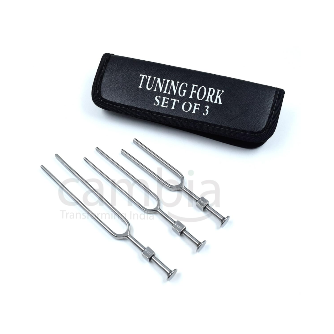 Cambia Tuning Fork Set ideal for hearing tests and sound therapy with zipper bag Useful in both medical and therapeutic settings (128Hz, 256Hz and 512Hz)