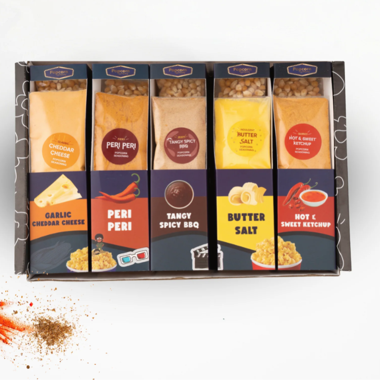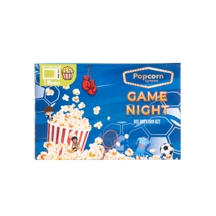 A game night kit from Popcorn & Co. is designed to elevate your at-home gaming experience with a focus on the perfect popcorn companion. The popcorn is made with high-quality ingredients and is air-popped for a light and crispy texture.