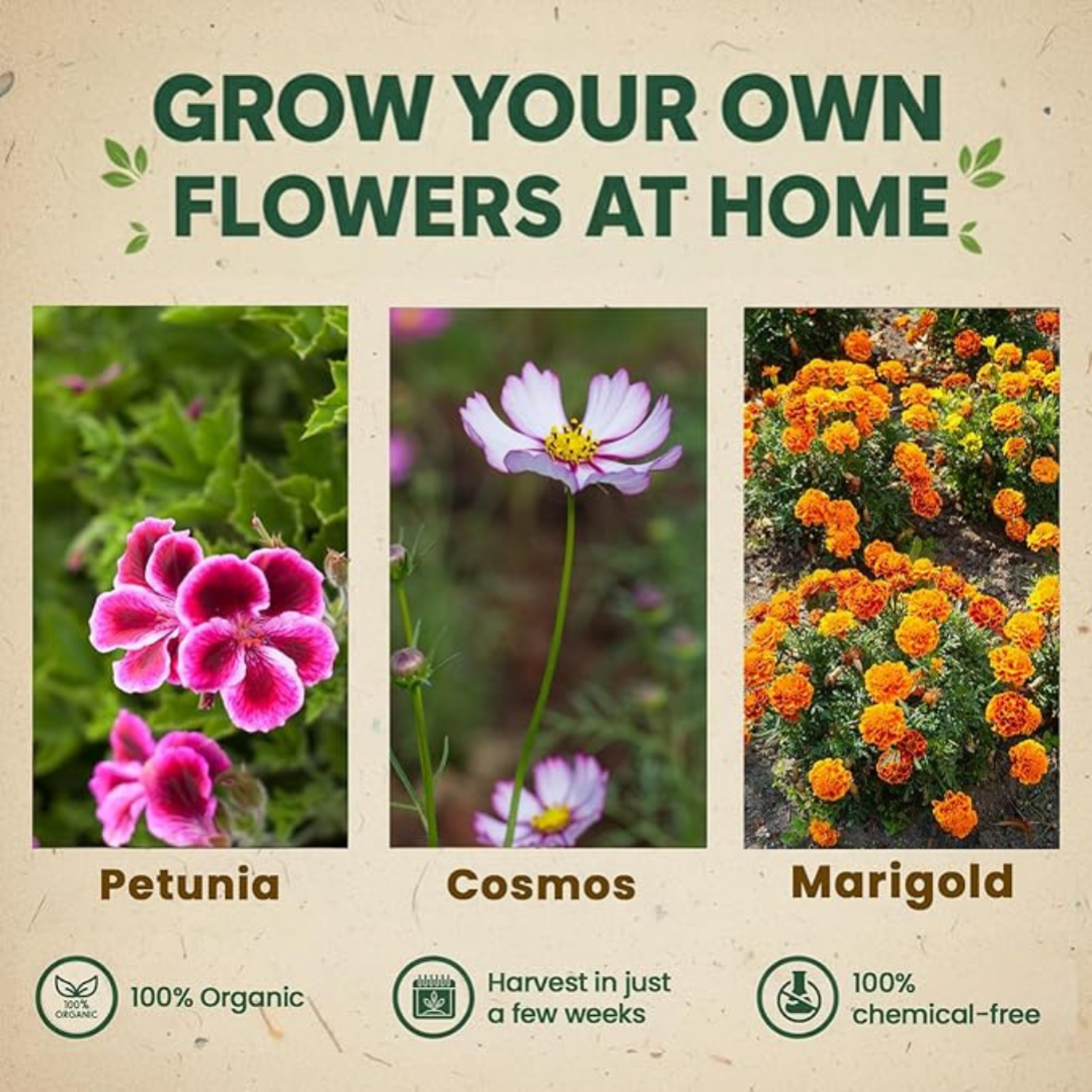 Garden Genie DIY Gardening Grow Kit 3 Verities of Flower Seeds Petunia, Cosmos & Marigold