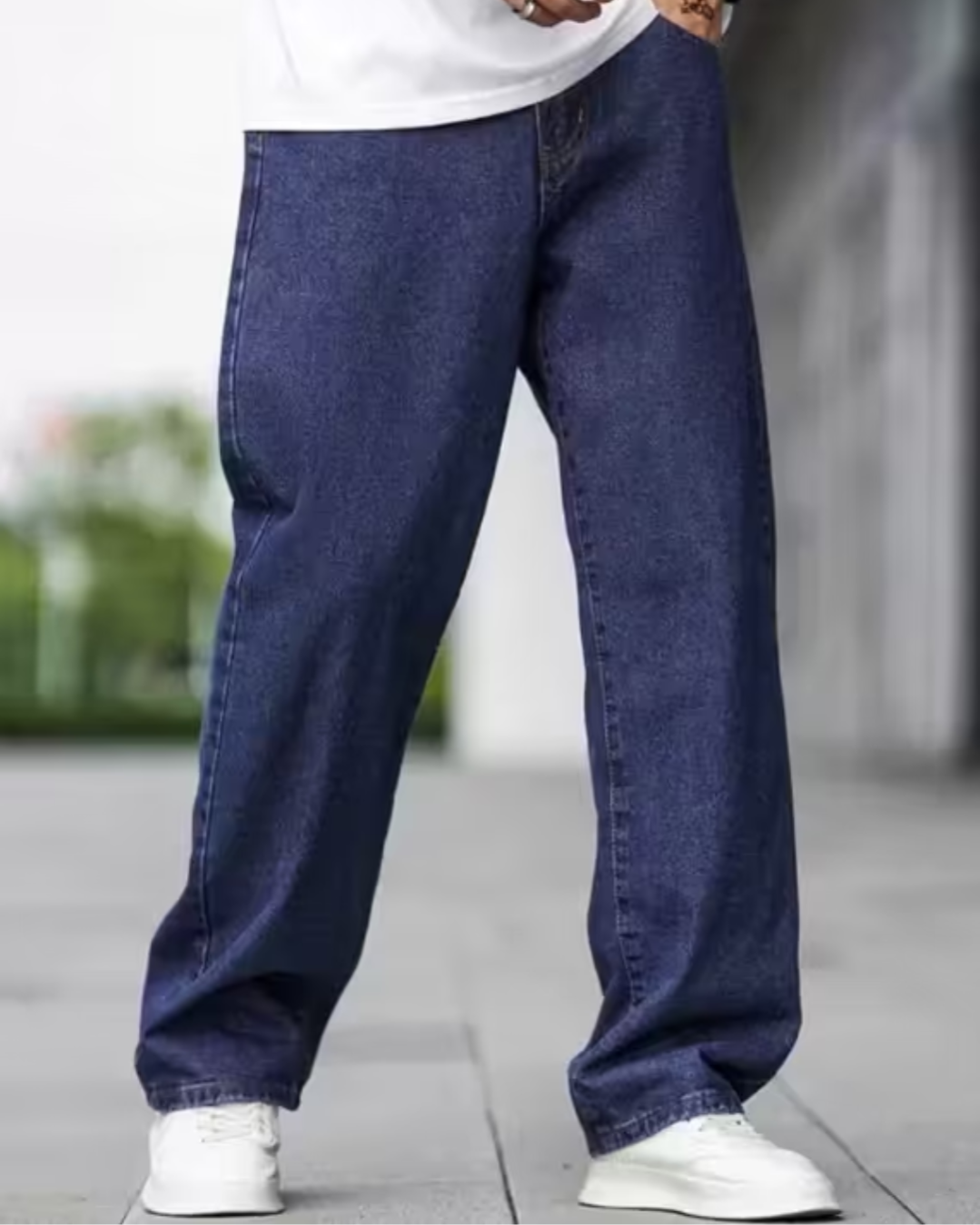 0 Review Of Product Men blue plain mid rise baggy jeans