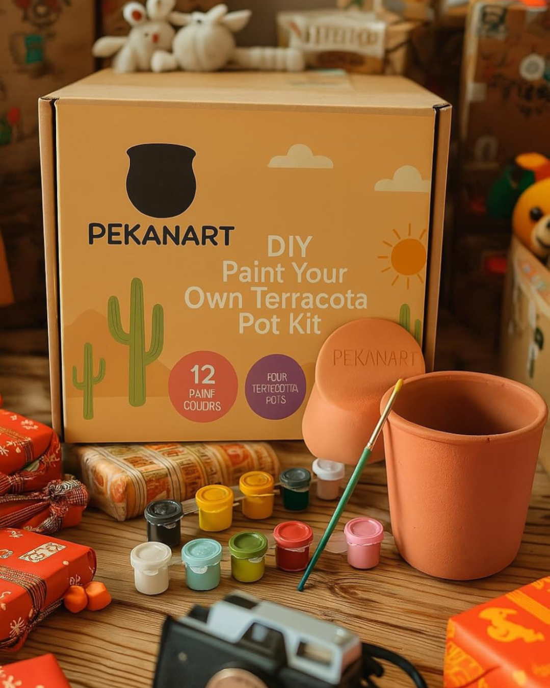 PEKANART Terracotta Pot Painting Kit Creative DIY Craft Box with 12 Colours