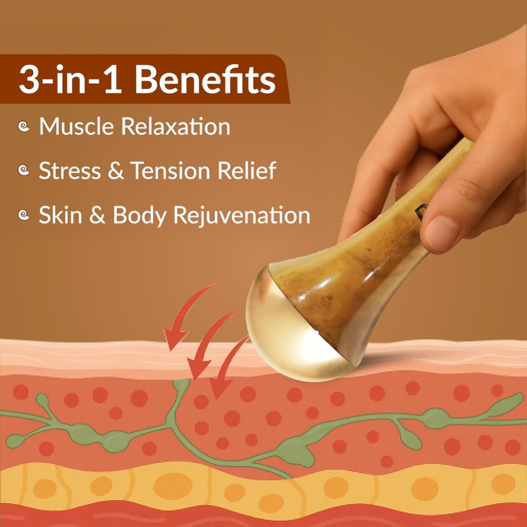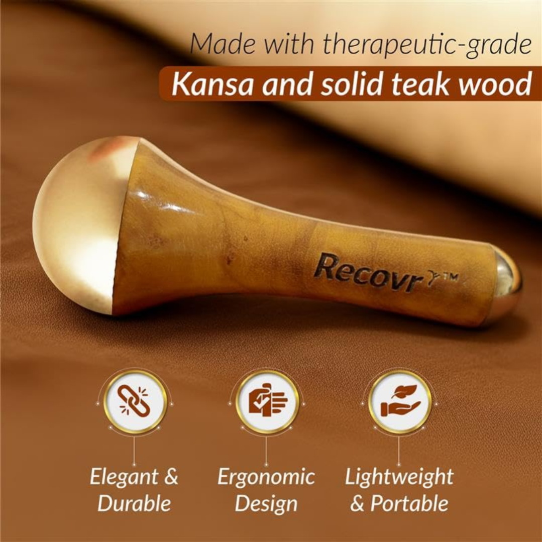 Recovr Dual-Sided Kansa Wand Massager | Certified Kansa with Natural Teakwood Handle | Ayurvedic Kansa Vati Inspired Foot, Face, Neck & Body Massage Tool | Traditional Wellness & Sculpting Tool