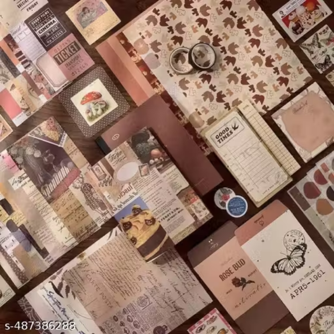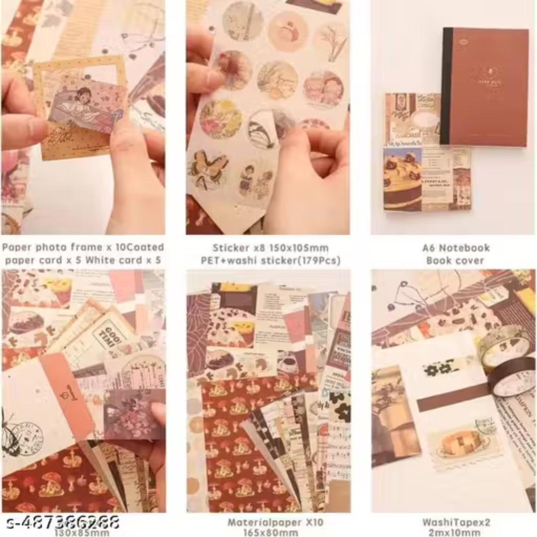 Scrapbooking Kit Aesthetic Journaling Kit with Bullet Journal Stickers Set Scrapbook Paper Washi Tape Set Cute stationery Kawaii Stationery Korean (Cocoa Brownie).